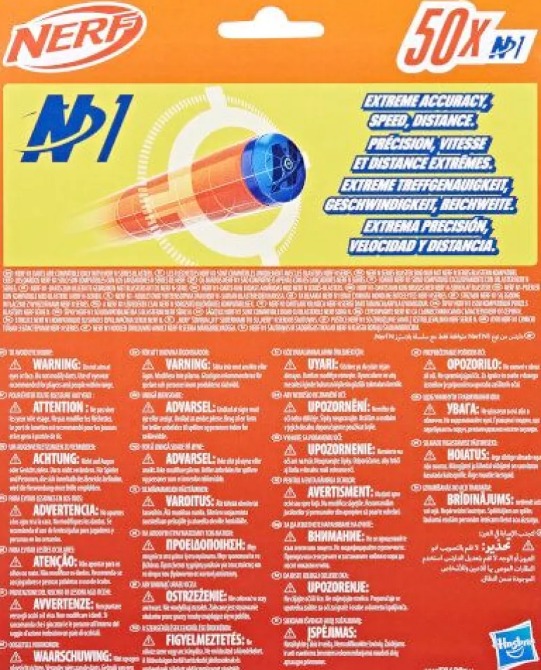 Nerf N1 Refill 50 Mit den High-Perfomance Dart-Blastern aus der Nerf N Series und Nerf N1 Darts bringt die Marke Nerf das Battle auf das nächste Level. Sind Erfahrungen als Nerf Spieler bereits vorhanden? Dann bieten die Blaster und Darts beim Indoor- und Outdoor-Battle den entscheidenden Vorteil. Von den Entwicklern des Schaumstoffdarts entfesselt die Marke Nerf die nächste Revolution beim Dart-Blasting, denn die Nerf N Series N1 Darts liefern EXTREME TREFFGENAUIGKEIT, GESCHWINDIGKEIT und REICHWEITE! Mit den offiziellen Nerf N1 Darts können die Fans pulsierenden Spielspaß erleben, wenn sie sich mit Familie und Freunden zu Nerf Wettbewerben treffen. Es ist ein spannender Spielspaß, wenn die Darts durch die Luft zischen und mit höchster Treffgenauigkeit weit fliegen und die Fans im Battle Erfolge erzielen. Dieser Pack enthält 50 Nerf N Series N1 Darts, die nur mit Nerf N Series Blastern kompatibel sind. Ein Augenschutz wird empfohlen (nicht enthalten). Blaster separat erhältlich, je nach Verfügbarkeit. NERF und HASBRO sowie alle dazugehörigen Marken und Logos sind Marken von Hasbro, Inc.