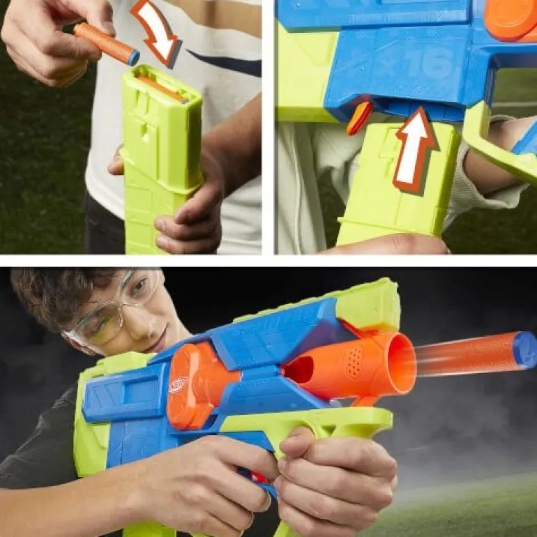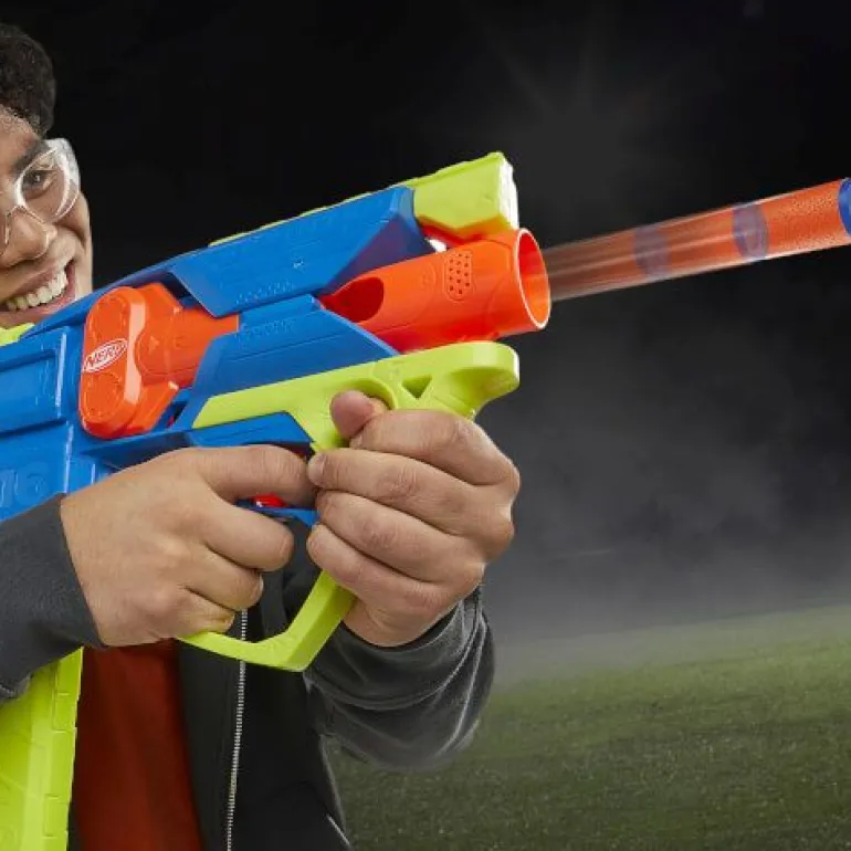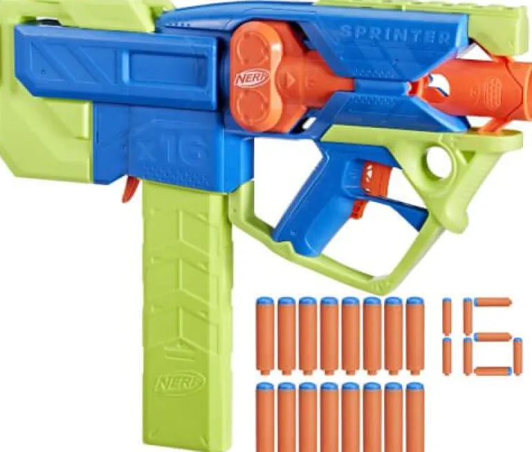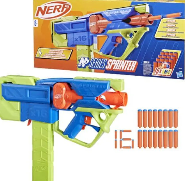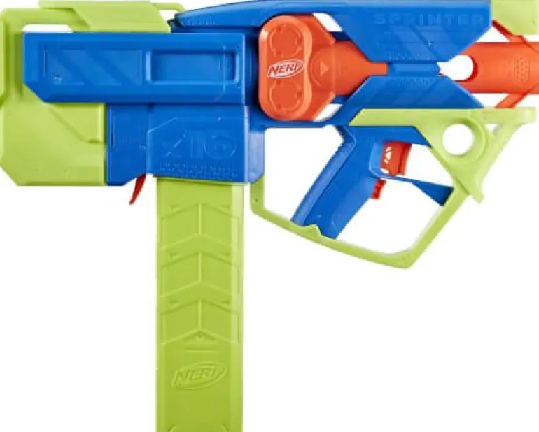 Nerf N Series Sprinter (nur FH) Mit den High-Perfomance Dart-Blastern aus der Nerf N Series und Nerf N1 Darts bringt die Marke Nerf das Battle auf das nächste Level. Sind Erfahrungen als Nerf Spieler bereits vorhanden? Dann bietet dieser Blaster und die Darts beim Indoor- und Outdoor-Battle den entscheidenden Vorteil. Von den Entwicklern des Schaumstoffdarts entfesselt die Marke Nerf die nächste Revolution beim Dart-Blasting, denn die Nerf N Series N1 Darts liefern EXTREME TREFFGENAUIGKEIT, GESCHWINDIGKEIT und REICHWEITE! Der Nerf N Series Sprinter Dart-Blaster präsentiert motorisierte Schnellfeuer-Action! Einfach den Motor dieses automatischen Blasters anwerfen und schon zischen die Darts durch die Luft. Der Sprinter Blaster kommt mit einem 16-Dart-Clip-Magazin und 16 Nerf N1 Darts. Nerf N Series Blaster sind nur mit Nerf N Series N1 Darts kompatibel. Ein Augenschutz wird empfohlen (nicht enthalten). 6 x 1,5 V AA Alkaline-Batterien erforderlich (nicht enthalten). NERF und HASBRO sowie alle dazugehörigen Marken und Logos sind Marken von Hasbro, Inc.
