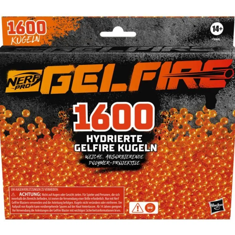 Mit dem Nerf Pro Gelfire Nachfüllpack kann man sich für das nächste Battle mit einem Nerf Pro Gelfire Blaster (separat erhältlich) rüsten. Dieser Pack enthält 1600 hydrierte Nerf Pro Gelfire Kugeln. Die hydrierten Nerf Pro Gelfire Kugeln werden mit hoher Geschwindigkeit aus einem Blaster abgefeuert und platzen beim Aufprall. Es ist nicht nötig, die Kugeln aufzuheben. Niemand möchte in der Mitte eines spannenden Battles ohne Kugeln dastehen. Mit diesem Nachfüllpack mit 1600 Gelfire Kugeln ist man immer vorne mit dabei. Ein tolles Geschenk für Jugendliche, die Nerf Pro Gelfire Battles lieben. Mit Nerf Pro Gelfire Blastern, die eine außergewöhnliche Performance bieten, kann um den Sieg gebattelt werden. Mit dem Nerf Pro Gelfire System kann man einen Vorteil haben und die Grenzen des Battles sprengen. Nerf Brille erforderlich (nicht enthalten). Blaster sind separat erhältlich, je nach Verfügbarkeit. Zur Verwendung im Außenbereich empfohlen. Ab 14 Jahren geeignet. Nerf sowie alle dazugehörigen Merkmale sind Marken von Hasbro.