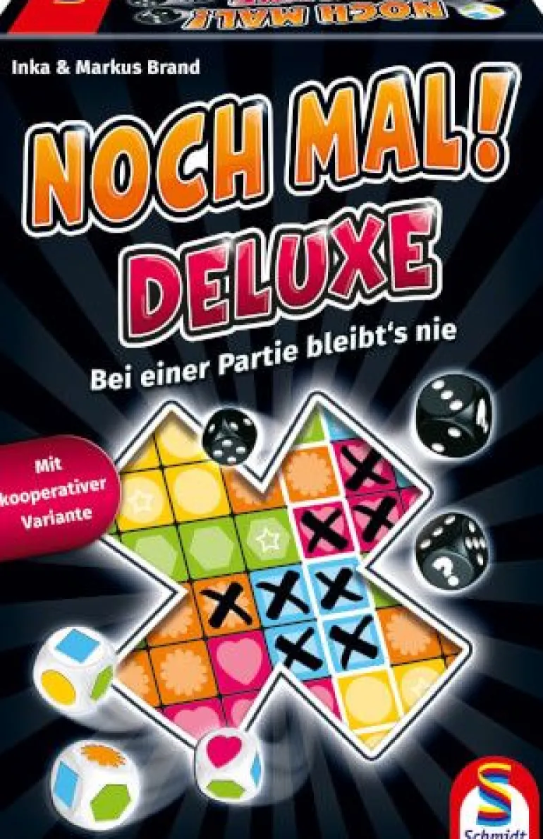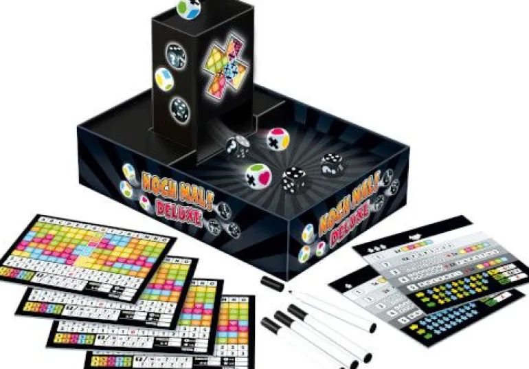 Erlebe das erfolgreiche NOCH MAL! jetzt in einer überarbeiteten Deluxe-Ausgabe! Größere, abwischbare Spielbretter, hochwertige Würfel mit Symbolen, durch die die Farben besser zu unterscheiden sind sowie einen Würfelturm, der das Spiel zum Erlebnis macht!