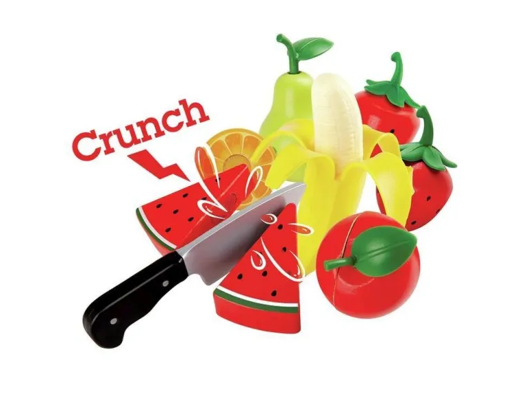 Mit dem Obst-Set wird gesunde Ernährung zum Kinderspiel. Es enthält jede Menge Früchte, die mit dem realistischen Spielmesser in Scheiben geschnitten werden können.