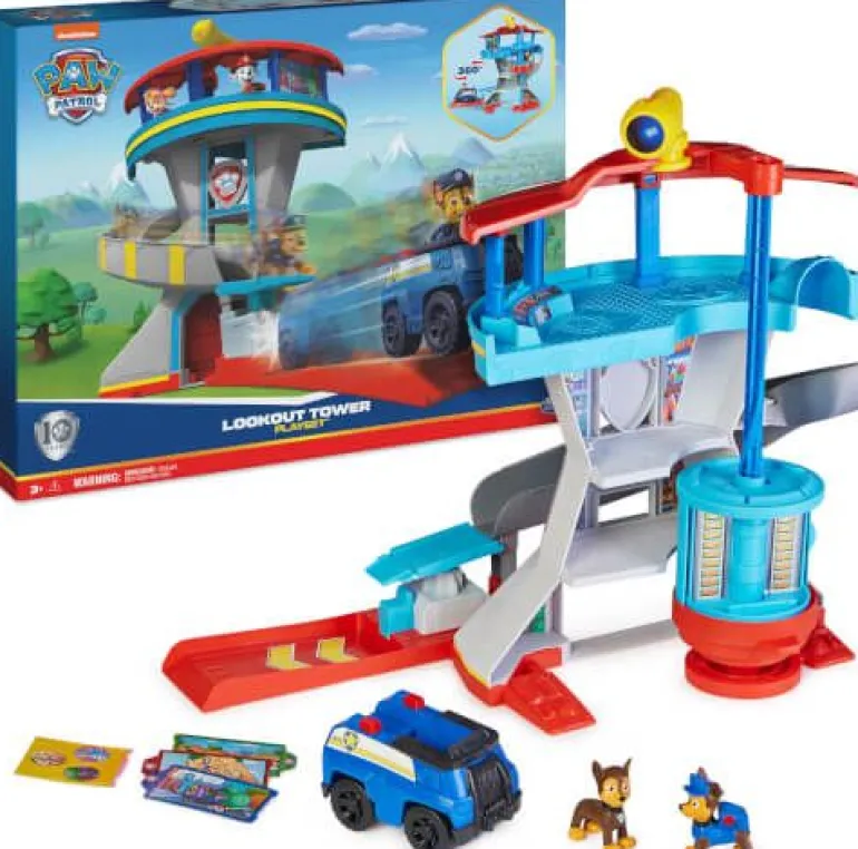 Mit dem PAW Patrol Lookout Tower Hauptquartier Spielset zum 10. Jubiläum der beliebten TV-Serie können Vorschulkinder ihre eigenen Rettungsmissionen nachspielen und erfinden. Dieses Spielset ist ein absolutes Muss für alle PAW Patrol Fans. Das Lookout Tower Spielset umfasst das Hauptquartier, wie man es aus der Serie kennt, das Basis Fahrzeug von Chase sowie zwei Chase Hundefiguren – einen Chase, der gerade nicht im Dienst und daher ohne Uniform unterwegs ist, und einen Chase im Helden-Modus.