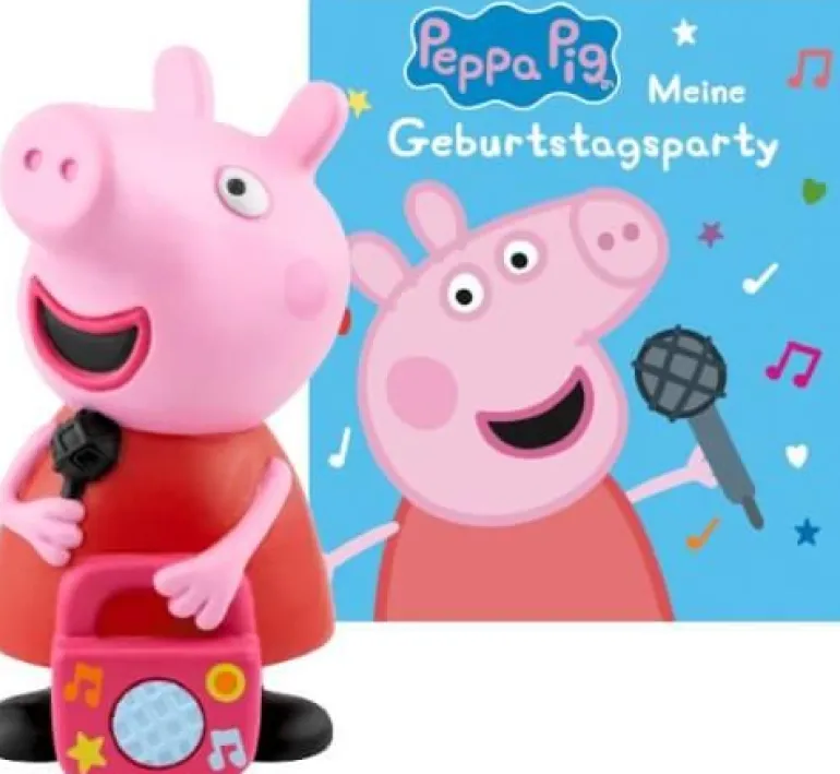 8 kurze Geschichten mit Peppa Pig, ihrer Familie und ihren Freunden, in denen es um das Feiern mit Freunden geht. Partys, Feste und natürlich Geburtstage – jedes Fest ist Anlass für eine Feier mit lieben Freunden und natürlich jeder Menge Spaß! Meine Geburtstagsparty Heute ist Peppas Geburtstag. Sie steht früh auf, um nichts von ihrem Ehrentag zu verpassen. Zuerst bekommt Peppa ein Geschenk von Mama, Papa und Schorsch. Dann ist es Zeit für ihre Party. Papa Wutz führt ein paar lustige Zaubertricks auf und lässt einen Geburtstagskuchen mit vier Kerzen erscheinen, die Peppa auspusten muss. Herzlichen Glückwunsch zum Geburtstag, Peppa Wutz! Das Kinderfest Das Schuldach ist schon wieder undicht! Die Kinder organisieren eine Party, um Geld für ein neues Dach zu sammeln. Lustige Musik Sonderlieferung für Papa Wutz – ein neuer Synthesizer! Während er bei der Arbeit ist, hat der Rest der Familie Wutz einen Haufen Spaß zusammen. Sie nehmen alle möglichen Geräusche im Haus auf. Als Papa Wutz zurückgekehrt und sein neues Instrument testet, erschrickt er als dieses Grunz-Geräusche und sogar eine Toilettenspülung von sich gibt. Der Geburtstag von Opa Wutz Heute ist der Geburtstag von Opa Wutz und die Familie trifft sich zu einem besonderen Essen. Für Peppa und Schorsch ist es der erste Besuch in einem Restaurant. Dort haben sie eine großartige Zeit und bitten den Kellner um alles, was sie auf einer Geburtstagsfeier erwarten würden. Zur Verwunderung von Mama und Papa Wutz ist der Kellner glücklich darüber Opa Wutz einen perfekten Tag zu bescheren. Selbstgemachte Musikinstrumente Heute sind Peppa und ihre Freunde in der Spielgruppe und Madame Gazelle will mit ihnen musizieren. Aber sie spielen nicht mit normalen Instrumenten, sondern müssen ihre eigenen Instrumente bauen. Madame Gazelle sammelt allen möglichen Krimskrams und zeigt den Kindern wie man diesen für den Instrumentenbau verwenden kann. Am Ende des Tages spielen die Kinder ein ganz besonderes Konzert für ihre Eltern. Die Musik-Box Peppa und Schorsch verbringen den Tag mit Oma und Opa Wutz beim Segeln. Sie legen einen Stopp beim Clubhaus ein. Dort stoßen sie auf eine eingestaubte Musikbox. Sie spielen Musik, tanzen und tauschen sich über ihre Lieblingsmusik aus. Der Piratengeburtstag Klausi Kläff hat Geburtstag, und mithilfe von Opa Kläff und Opa Wutz gehen die Kinder auf die Jagd nach einem richtigen Piratenschatz! Kostümparty Peppa und Schorsch veranstalten eine Kostümparty und alle ihre Freunde sind dazu eingeladen. Peppa ist als Märchenprinzessin und Schorsch als furchteinflößender Dinosaurier verkleidet. Peppas beste Freundin Luzie Locke ist eine Krankenpflegerin, Klausi Kläff ein Pirat, Mollie Mieze eine Hexe, Pedro Pony ein Clown und Luisa Löffel ist … eine Karotte. Peppa soll das beste Kostüm prämieren, doch es fällt ihr schwer, nicht sich selbst zu wählen.