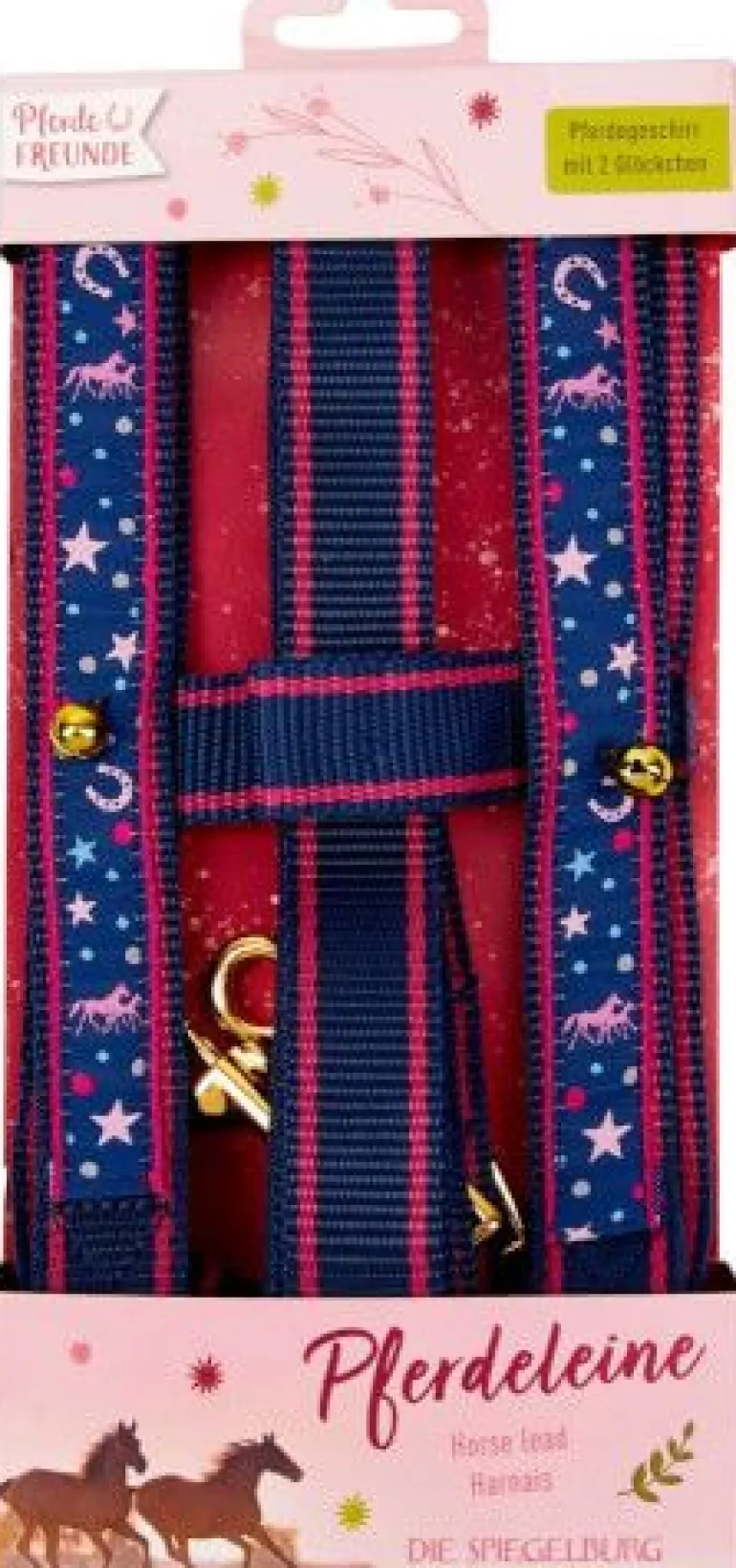 Pferdegeschirr mit Glöckchen zum Spielen. Die Pferdeleine für Pferdefreunde ist ein tolles Pferdespielzeug für drinnen und draußen. Aus Polyester.