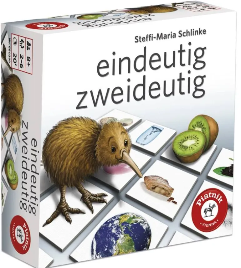 Wörter mit doppelter Bedeutung wie „Kiwi“, „Strudel“ oder „Erde“ bilden die Grundidee des pfiffigen Memospiels.