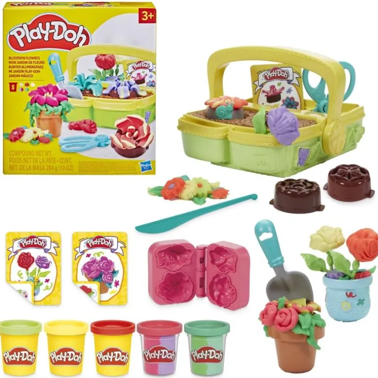 Hiermit kann die kindliche Fantasie erblühen Wenn Kinder ihre Play-Doh Blumen vor ihren eigenen Augen erblühen lassen, hat die Fantasie immer Saison. Schritt 1: Farben & Formen wählen Um zu beginnen, wird eine Play-Doh Farbe (oder zwei) in die Gärtnerbox gefüllt und mit einer Blumenform gekrönt. Schritt 2: Play-Doh Blumen wachsen lassen Einfach den Griff drücken, und schon wachsen aus der Gärtnerbox 2 bunte Play-Doh Blumen gleichzeitig hervor. Schritt 3: Blumensträuße arrangieren & präsentieren Dann können die Blumenformen mit der eigenen Blütenkreation im Blumentopf oder der Vase kunstvoll dekoriert werden. Play-Doh Gartenwerkzeuge Kelle, Gartenschere und andere Knetwerkzeuge laden zu noch mehr spielerischer Gartenarbeit ein. Die Liebe zur Natur vermitteln Indem sie ihre eigenen Play-Doh Blumen kreieren, kann das Interesse der Kinder am Gärtnern und der Natur geweckt werden. Ein Nachfüllpack gefällig? (Separat erhältlich) Für dieses Set kann jeder Play-Doh Knetpack verwendet werden, um noch mehr Farben zu erhalten und die Kreativität noch weiter zu fördern.
