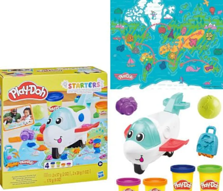 Play Doh Airplane Explorer Starter Set Wer sitzt heute im Cockpit? Mit dem Förmchen können Pilot&Co-Pilot immer wieder neu kreiert werden. Mit vielfältigen Details wie Halfmolds, Stempeln und Knetformen im beliebten Reisethema. Praktische Knetmatte inspiriert zum Entdecken der Welt. Accesoires können platzsparend im Flugzeug verstaut werden.