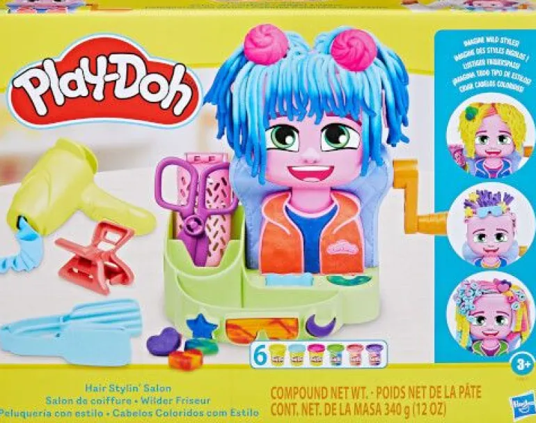 PD Wilder Friseur Hair Styling Salon Bunte Knethaare wachsen lassen, schneiden & stylen – wer kreiiert die wildeste Friseur? Der größte Frisierkopf von Play-Doh -für noch größeren Spielspaß! Mit der verbesserten Mechanik wachsen die Knethaare kinderleicht. Ob Locken oder glatte Haare- beides kann in bunten Farben geknetet werden. Die zweifarbige Knete sorgt für extra viel Farbe in der Friseur. Mit vielen tollen Stylingtools und Accessoires.