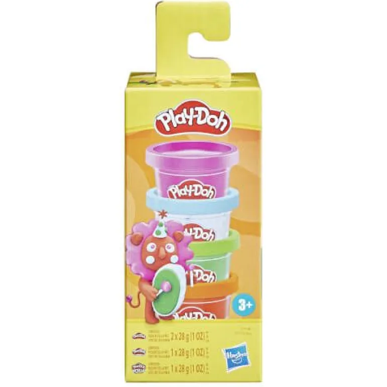 PD MINI COLOR PACK AST Klein aber oho! Jeder Play-Doh Mini Farbenpack beeindruckt mit 4 Play- Doh Farben in 28g-Dosen, darunter spezielle Knete wie Play-Doh Glitzerknete und Play-Doh Schimmerglanzknete. Jungen und Mädchen ab 3 Jahren können mit der Play-Doh Spielknete und dem Knetmesser farbenfrohe, witzige und originelle Kreationen gestalten. Diese kleinen Play-Doh Sets in mehreren Farben eignen sich prima als Beschäftigung für zu Hause, als Geschenk zu Ostern, zum Nikolaus oder für Kinder, die gerne kneten. Hasbro, Play-Doh, sowie alle dazugehörigen Merkmale sind Marken von Hasbro.