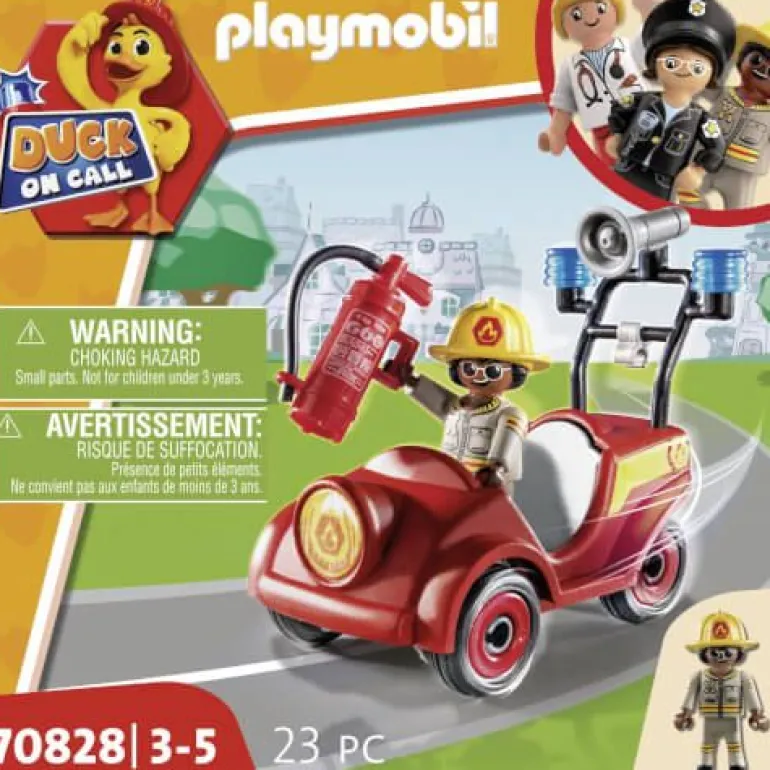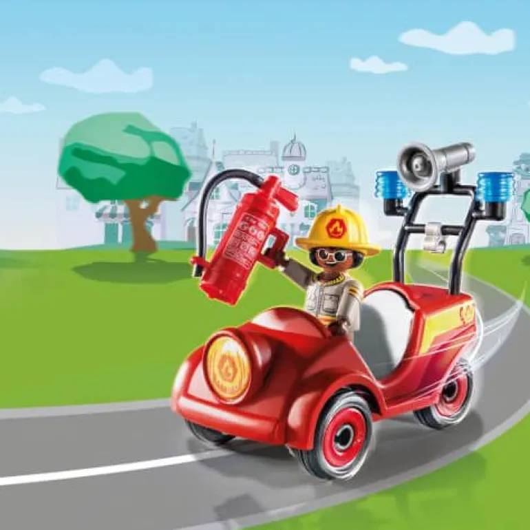 Freddy on tour! Freddy und sein Mini-Feuerwehrauto sind jederzeit einsatzbereit. Maße: 14,2 x 14,2 x 6,6 (LxTxH)