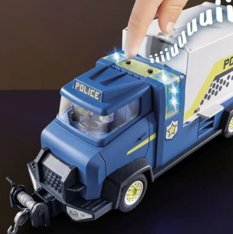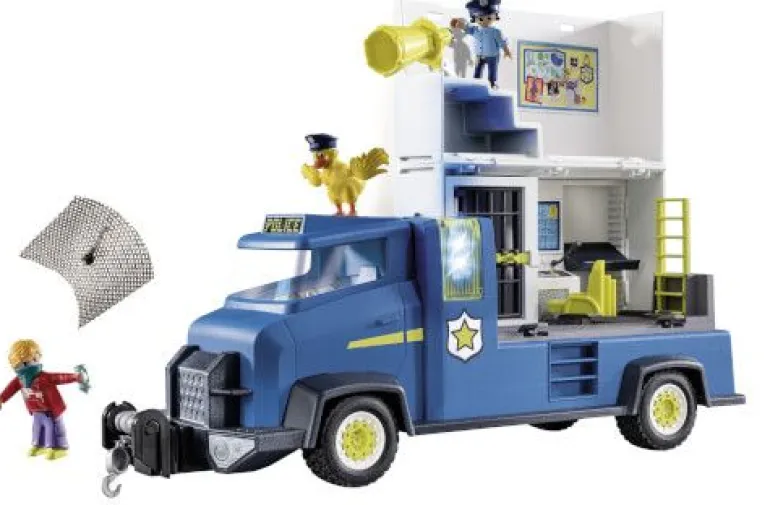 mit integrierten Licht- und Soundeffekten. In der aufklappbaren Kommandostation mit Gefängniszelle können Bösewichte festgehalten werden. Hoffentlich versuchen sie nicht auszubrechen! Maße: 58,5 x 38,5 x 14,7 cm (LxTxH)