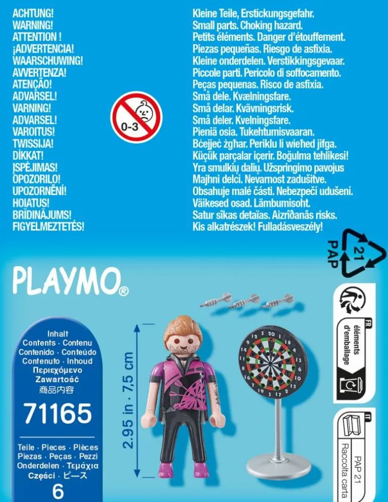 Figuren: 1 Dartspieler Zubehör: 1 Dartscheibe, 3 Dartpfeile