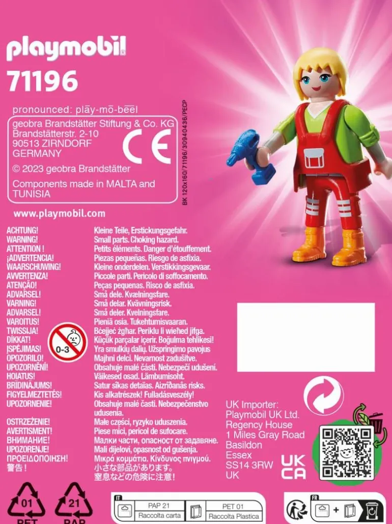 Figuren: 1 Handwerkerin Zubehör: 1 Bohrmaschine, 1 Werkzeugkasten, 1 Werkzeug-Set