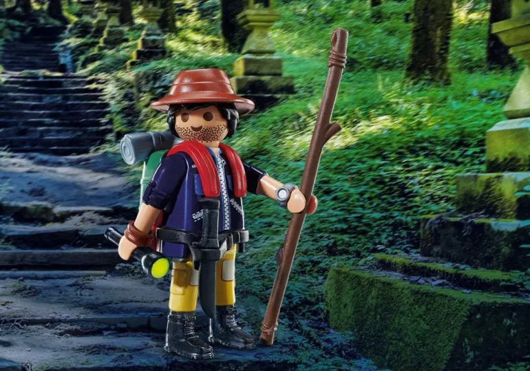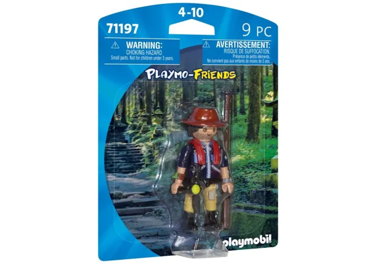Figuren: 1 Abenteurer Zubehör: 1 Hut, 1 Rucksack, 1 Armband, 1 Armbanduhr, 1 Taschenlampe, 1 Messer, 1 Wanderstock