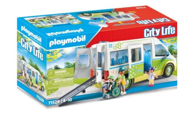 Um den Innenraum leichter bespielen zu können, sind das Dach der Fahrerkabine und der Dacheinsatz abnehmbar. Das Spielzeugset enthält drei PLAYMOBIL-Figuren, einen Schulbus, einen Rollstuhl, Rucksäcke und weitere tolle Extras. Ein liebevoll gestaltetes Spielset für aufgeweckte Kinder ab 4 Jahren.“