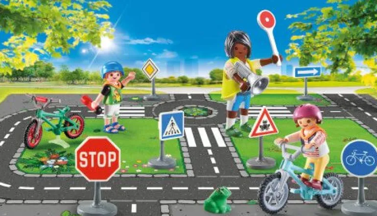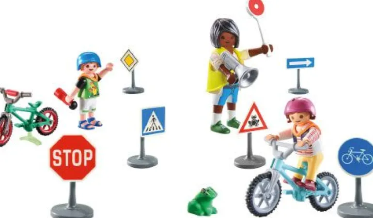 Das Spielfigurenset enthält drei PLAYMOBIL-Figuren, sechs Verkehrsschilder, zwei Fahrräder, ein Megafon, eine Kelle und weitere tolle Extras. Ein ideales Geschenk oder Mitbringsel zum Schulstart oder für alle cleveren Kinder ab 4 Jahren.“