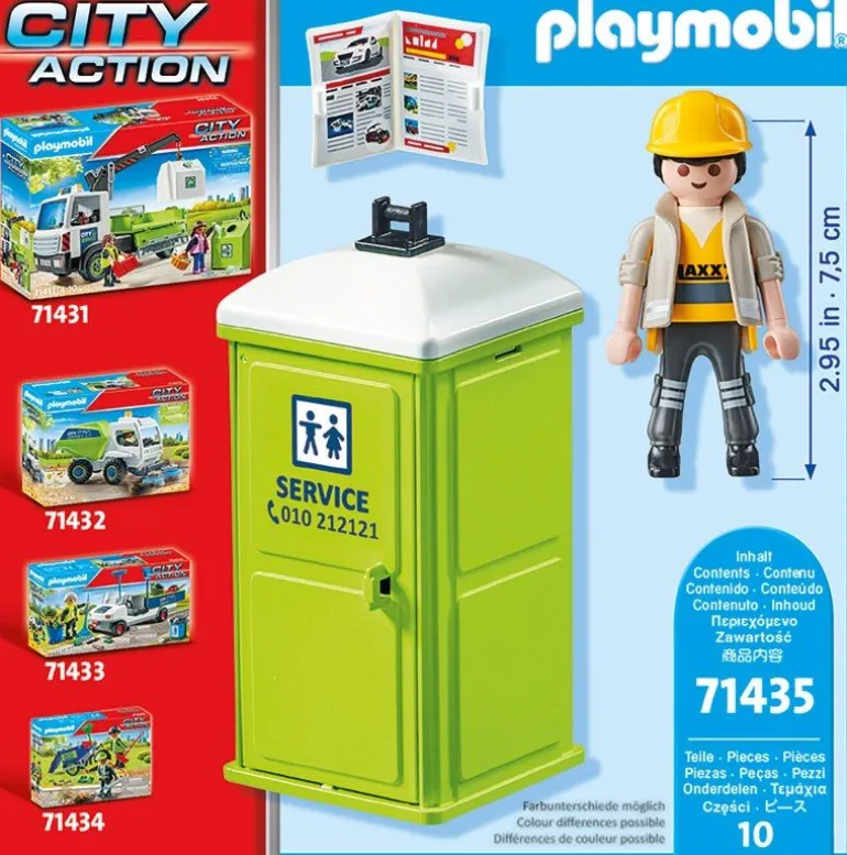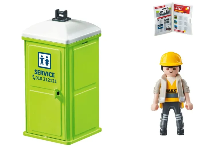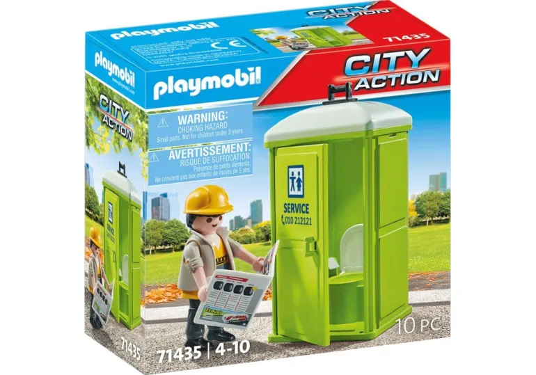 Mit Hilfe des Kranhakens kann die Toilette problemlos am Haken angehoben und zum nächsten Einsatzort transportiert werden. Mit den vielseitigen PLAYMOBIL City Life Spielsets können interessierte Kinder ab 4 Jahren realistische Alltagsgeschichten nachspielen. Kombiniere die mobile Toilette mit dem Altglas-LKW (71431) für noch mehr Spielspaß.