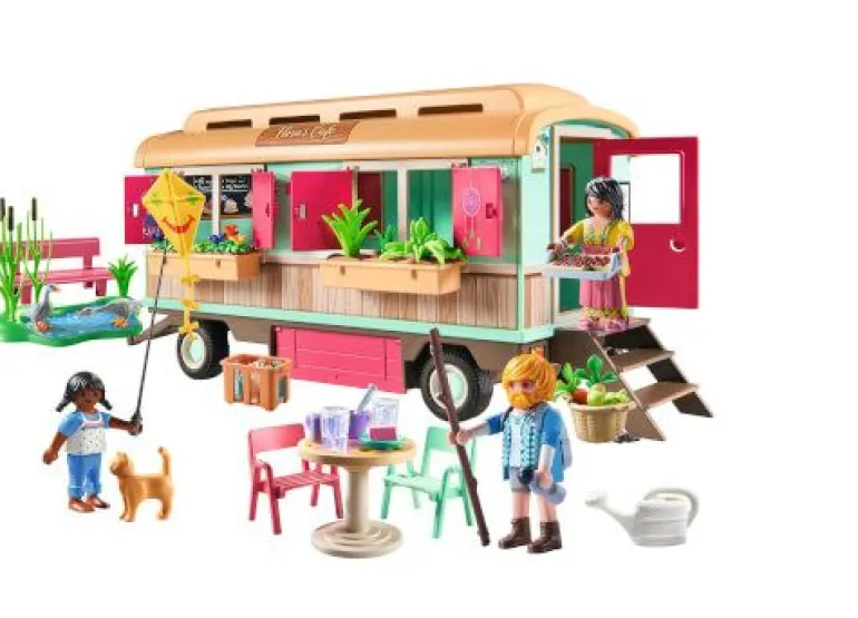 „Mit dem gemütlichen Bauwagencafé von PLAYMOBIL sind der Fantasie keine Grenzen gesetzt! Entwickelt für Kinder ab 4 Jahren, kombiniert dieses farbenfrohe Spielset den Charme eines gemütlichen Cafés mit dem Abenteuer eines Bauwagens und bietet endlose fantasievolle Spielstunden. Mit dem gemütlichen Bauwagencafé können Kinder ihre eigenen Geschichten erfinden, indem sie in die Rolle von Cafébesitzer:innen, Köchen und Köchinnen oder hungrigen Gästen schlüpfen. Ob Kaffee aufbrühen, köstliche Leckereien servieren oder lustige Picknicks in der Natur veranstalten, die Möglichkeiten sind unbegrenzt. Ein tolles Geschenk für jeden Anlass, das Kreativität fördert und Kinder wertvolle Fähigkeiten entwickeln lässt.