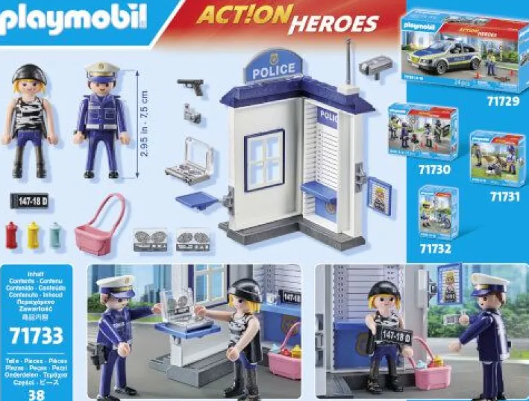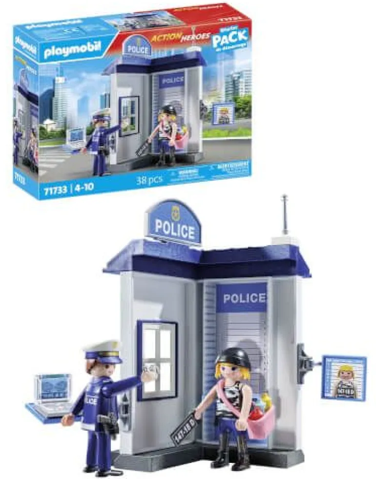 Wer war’s? Hilf dem Polizisten im Ermittlungszimmer herauszufinden, wer sich draußen mit den Spraydosen ausgetobt hat, Fotos von der potenziellen Täterin zu machen und ihre Fingerabdrücke mithilfe des Laptops zu vergleichen. Kann an die Polizeistation angebaut werden und ist eine tolle Erweiterung für die PLAYMOBIL-Polizeiwelt!