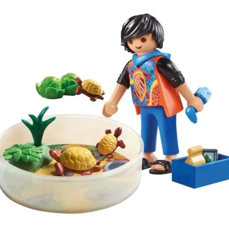 Der Tierpfleger versorgt die Schildkröte und ihren Nachwuchs, die im artgerechten Terrarium untergebracht sind.