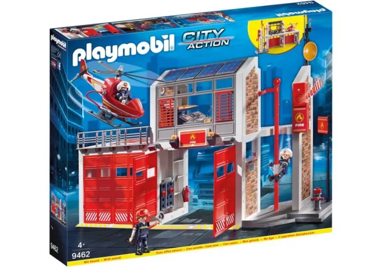 Figuren: 1 Feuerwehrfrau, 2 Feuerwehrmänner; Zubehör: 1 Feuerwache, 1 Helikopter, 1 Fahne, 1 Kommandopult, 1 Schreibtischstuhl, 1 Hydrant, 1 Feuerlöscher, 2 Ordner, 1 Schaufel, 1 Besen, 1 Kurzaxt, 1 Langaxt, 1 Megafon, 1 Digitalkamera, 1 Funkgerät, 1 Taschenlampe, 1 Mütze, 1 Flughelm mit Mikrofon, 1 Feuerwehrhelm mit Visier, 1 Paar Handschuhe