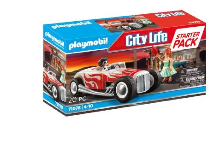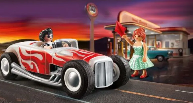 Der perfekte Einstieg in die PLAYMOBIL Spielwelten! Welcome to the 50’s! Mit dem coolen Hot Rod geht’s zum ersten Date.