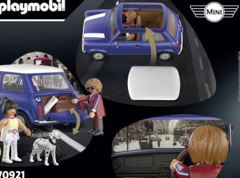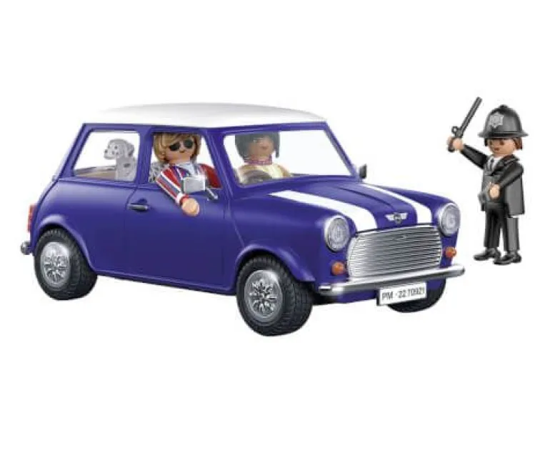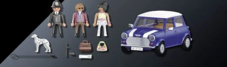 Alle Autofreunde können sich auf eine echte Legende aus Großbritannien freuen: den Mini Cooper. Nicht nur Mr. Bean, sondern auch die Beatles fuhren dieses legendäre Kultauto. Wie kein anderes Auto verkörpert der Mini Cooper klassischen britischen Stil in einem kleinen, spaßigen und wendigen Paket. Kein Wunder, dass das Design des Original Minis für knapp 41 Jahre fast unverändert blieb. Der Mini Cooper bietet viel Auto auf wenig Raum – für den Designer Alec Issigonis stand „kreative Raumnutzung“ und „Konzentration auf das Wesentliche“ so sehr im Vordergrund, dass weder Heizung noch Radio im Auto Platz fanden und anstelle versenkbarer Fenster Schiebefenster zum Einsatz kamen. Wie das Original lässt auch das PLAYMOBIL-Modell jedes Sammlerherz höherschlagen. Die Heckklappe kann geöffnet werden und über das abnehmbare Dach können vier Figuren in das kleine Raumwunder einsteigen. Der Mini Cooper von PLAYMOBIL glänzt nicht nur durch das liebevolle und detailgetreue Design, sondern auch durch hochwertige Einzelteile in edler Chromoptik. Wie es sich für ein britisches Auto gehört, sind Lenkrad und Fahrersitz auf der rechten Seite. Neben zwei Figuren im farbenfrohen 70er-Jahre-Outfit mit Dalmatiner befindet sich auch ein Polizist in typisch englischer Uniform im Set.