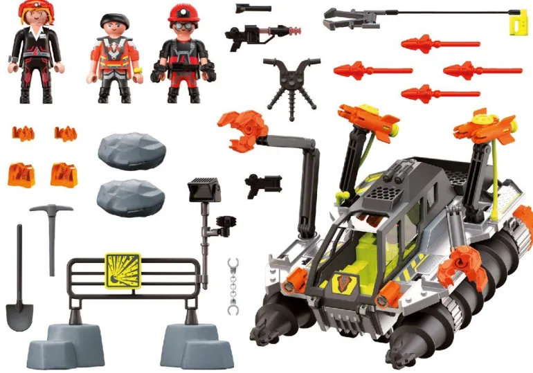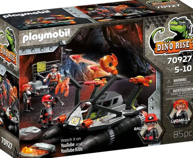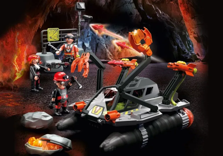Mit ihrem starken Bohrfahrzeug bahnen sich die Schurken Ludmilla und Ralph von der Comet Corp. ihren Weg durch die Dino Mine. Die sich bei Bewegung drehenden Bohrköpfe, sowie zwei funktionale Kanonen und die flexiblen Greifarme bieten vielfältigen Spielspaß auf der Suche nach Energiesteinen und der Lavaquelle. Inkl. 3 Figuren, Energiesteinen und weiteren Accessoires Maße: 21 x 15 x 9,5