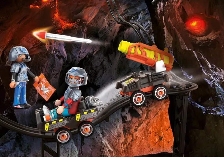 Wie immer sind Ayla und Samu im Doppelpack unterwegs, diesmal mit ihrem doppelsitzigen Mine Cruiser. Das Dino Mine Raketenkart ist auf die Spur der Schienenbahn in der Dino Mine abgestimmt und mit einer funktionsfähigen Kanone ausgerüstet. Mit diesem Gefährt sind den Geschwistern aufregende Fahrten garantiert.