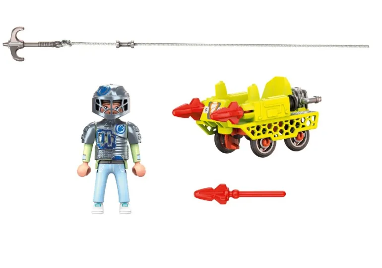Auch Tüftler Milow hat sich an die neuen Gegebenheiten in der Dino Mine perfekt angepasst. Mit seinem Minen Cruiser kann er das Streckensystem der Dino Mine befahren. Gemeinsam mit seinen Kameraden von Team Dino Rise versucht Milow, den eingesperrten Dino aus den Fängen der Miners zu befreien.