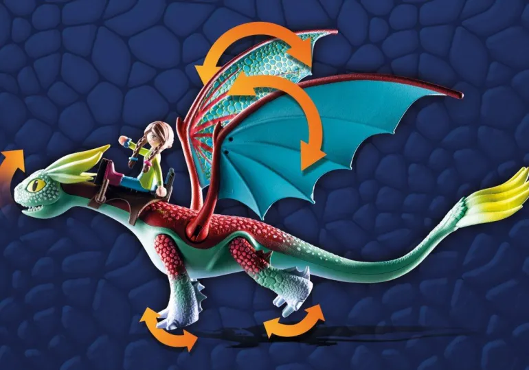 Mit dem Feathers & Alex Spielset von PLAYMOBIL können kleine und große Drachenabenteuer jetzt auch zu Hause nachgespielt werden. Beine, Kopf und Flügel der Drachenfigur sind beweglich. Die Federn an Hinterkopf und Schwanz sind aus weichem Material gefertigt. Durch den montierten Sattel kann eine Figur auf dem Rücken des Drachens sitzen.