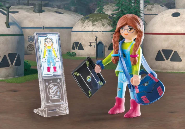 Das Set enthält den Dragons: The Nine Realms Charakter Alex Gonzalez und ihren Drachen Feathers, einen Laptop, ein Hologramm, einen großen Kristall und weitere Extras für spannenden Drachenspaß.