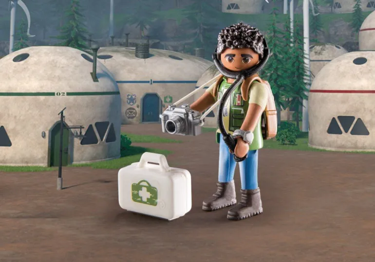 Das Spielset enthält die Dragons: The Nine Realms Charaktere D’Angelo Baker und seine Drachendame Plowhorn, einen Kristallfelsen zum Sprengen, Arztkoffer, Stethoskop, Rucksack und viele weitere tolle Extras.