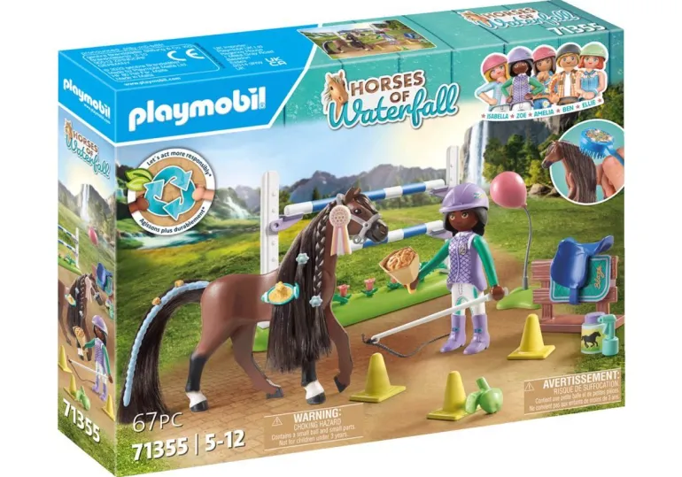 Fun Fact: Zoe wurde zwar als jüngstes Mitglied in der Luckyville Horse Academy aufgenommen, verpasst aber keine Reitstunde auf der Waterfall Ranch mit ihren besten Freund:innen. “ „Im Zentrum der detailreichen neuen Pferdewelt von PLAYMOBIL steht die idyllische Waterfall Ranch. Dort verbringen die fünf besten Freund:innen Amelia, Isabella, Zoe, Ellie und Ben gemeinsam mit ihren Pferden jede freie Minute und erleben spannende Abenteuer. Zoe hat ehrgeizige Ziele: Sie will die beste Springreiterin Waterfalls werden und trainiert dafür täglich fleißig mit ihrem geliebten Wallach Blaze. Die beiden sind ein eingespieltes Team und nehmen mühelos jedes Hindernis auf dem Reitparcours.