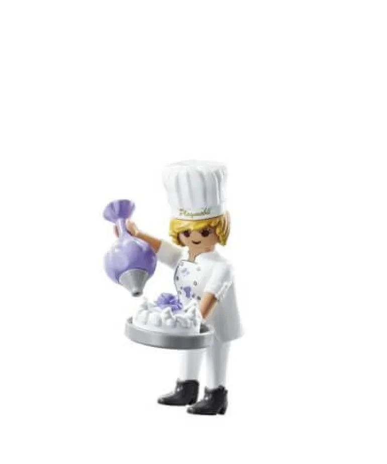 In der Backstube hat die Konditorin eine kreative Idee nach der anderen. Hier zaubert sie traumhafte Torten und leckere Naschereien. Gerade erhält die frischgebackene Torte ein kunstvolles Rosendekor. Ein Meisterstück! Das Spielset enthält eine PLAYMOBIL-Figur, eine Torte, einen Spritzbeutel, eine Konditormütze und ein Tablett. PLAYMO-Friends Figuren sind ein tolles Mitbringsel und eine perfekte Ergänzung jeder PLAYMOBIL-Sammlung.