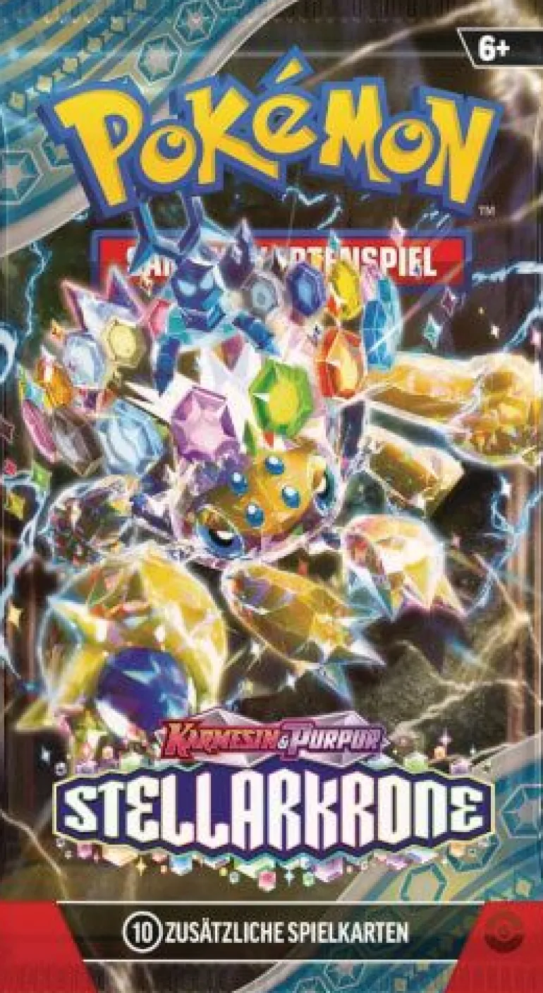 Steige herab in eine unterirdische Welt, um das wahre Potenzial der Terakristallisierung zu entdecken! Das Legendäre Pokémon Terapagos besteigt den Thron, begleitet von Liberlo-ex, Lapras-ex und Voltula-ex, die als Stellar-Terakristall-Pokémon-ex über brillante neue Kräfte verfügen. Und während das kürzlich entdeckte Hydrapfel-ex noch mehr Pokémon-ex in den Kampf führt, mischen ASS-KLASSE-Karten das Spiel in der Pokémon-Sammelkartenspiel-Erweiterung Karmesin & Purpur – Stellarkrone weiter auf! Inhalt: – 10 zufällig sortierte Karten in jedem Boosterpack – Zusätzlich enthalten: eine Code-Karte für ein Online-Boosterpack für die Online-Version des Pokémon Sammelkartenspiels Das Display enthält 36 Boosterpackungen mit je 10 Karten.