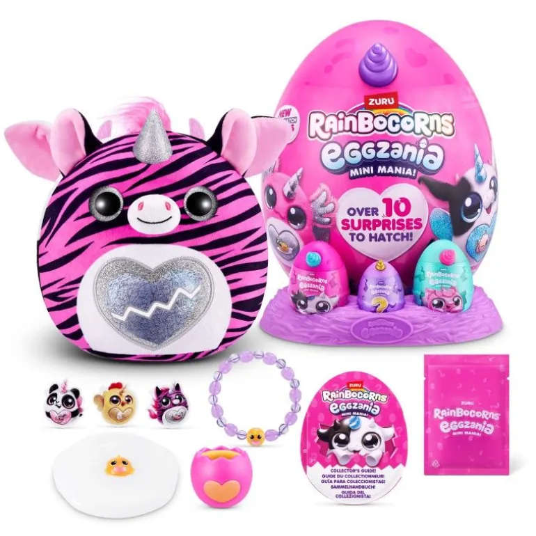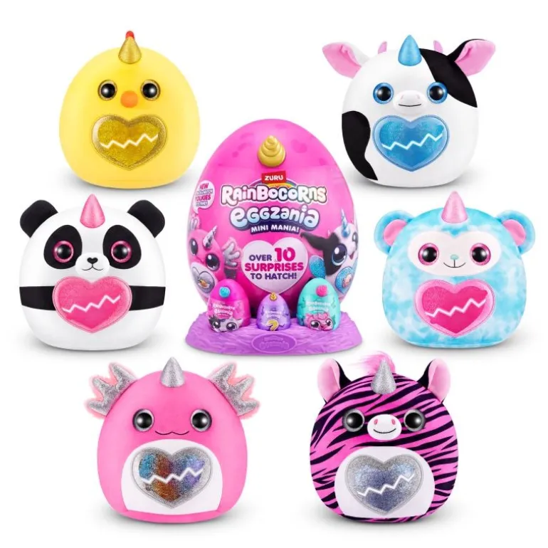 Entdecke das brandneue Eggzania Mini Mania! In diesem Ei stecken über 10 Überraschungen und brandneue Eggzania-Charaktere! Es gibt 6 Eggzania Charaktere zum Sammeln, darunter einen Axolotl, eine Kuh und einen Affen. Jedes Eggzania-Plüschtier wird mit tragbaren Eggzania-Accessoires, Aufklebern, Rainbocorns-Schleim und einem Boo-boocorn geliefert!