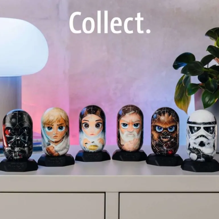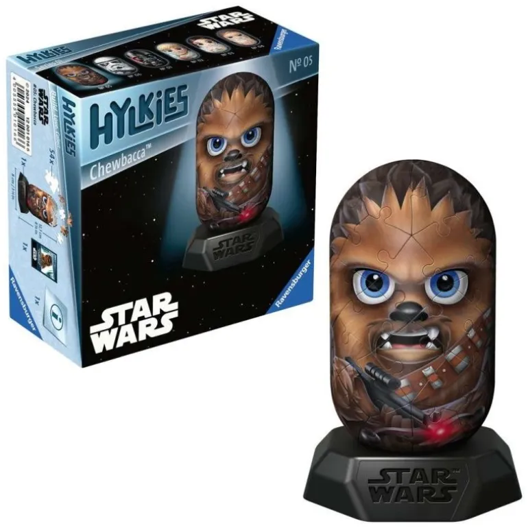 Wer Star Wars liebt, wird nach den Hylkies verrückt sein. Die Lieblings-Charaktere aus StarWars, Marvel und Co. einzigartig illustriert in einer ikonischen Kapselform zum selbst aufbauen.Die Figuren lassen sich dank nummerierter Teile schnell und einfach zusammenbauen und machen sich bestens als Sammelstücke im Regal: ob einzeln oder als ganze Hylkies-Herde, in der sich die unterschiedlichen Figuren perfekt nebeneinander reihen. Ein Muss für echte Fans!Einfach zum Verlieben. Die Hylkies stellen einige der berühmtesten Filmhelden dar: einzigartig illustriert auf einer außergewöhnlichen 3D-Kapselform. Entdecke deine Favoriten Stück für Stück ganz neu: Aus 54 bedruckten und auf der Rückseite nummerierten Kunststoff-Teilen in Puzzleform entsteht in einem intuitiven und entspannenden kurzen Aufbauprozess einer deiner Lieblings-Helden. Einmal aufgebaut und auf dem hochwertigen Sockel platziert machen sich die Hylkies perfekt im Regal, als Blickfänger und garantierter Gesprächsstoff für wahre Fans. Egal, ob nur eine einzelne Figur, oder eine Sammlung aus mehreren Hylkies – der speziell designte Kapsel-Look macht sie zu einem Highlight jeder Kollektion.Jeder Figur liegt neben dem Sockel und den hochwertigen Kunststoff-Teilen, aus denen die Kapsel zusammengebaut wird, auch eine kleine Charakter-Karte bei.