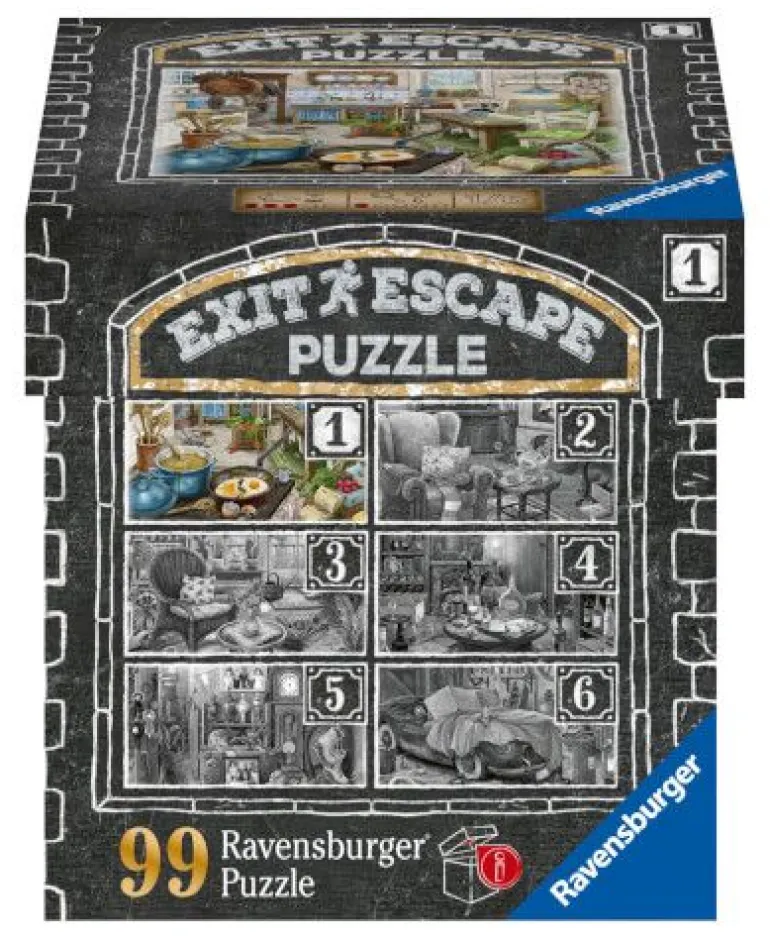 EXIT Puzzle von Ravensburger! Puzzeln, Rätseln, Lösen. Gelingt es, die Puzzleteile an ihren Platz zu legen, die Rätsel zu finden und sie mit zu knacken? Verschiedene Schwierigkeitslevel der Puzzles sowie zwei unterschiedliche Teilezahlen innerhalb der EXIT Reihe garantieren abwechslungsreiches Puzzle- und Rätselvergnügen! In der Schachtel befindet sich ein Puzzle mit 99 geheimnisvollen Teilen, eine Anleitung und einen Umschlag welcher die Lösung beinhaltet.