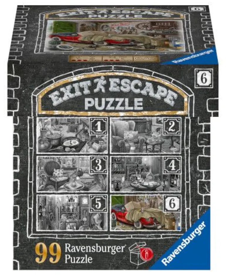 Jetzt gibt es das Konzept der EXIT Rooms auch als Ravensburger Puzzle! Frei nach dem Motto: Puzzeln, Rätseln, Lösen. Gelingt es, die vielen Puzzleteile an ihren Platz zu legen, alle Rätsel zu finden und sie mit hinreichender Kombinationsgabe zu knacken? Eine spannende Geschichte lässt Puzzler und Spieler in die geheimnisumwobene Welt des EXIT Puzzles eintauchen, in der es den EXIT zu finden gilt! Gelingt dies, kann man mit Stolz behaupten seine Mission mit Bravour gemeistert zu haben. Verschiedene Schwierigkeitslevel der Puzzles sowie zwei unterschiedliche Teilezahlen innerhalb der EXIT Reihe Puzzles garantieren dabei abwechslungsreiches Puzzle- und Rätselvergnügen! In der Schachtel befindet sich ein Puzzle mit 99 geheimnisvollen Teilen, eine Anleitung mit einer mysteriösen Geschichte und einen Umschlag welcher die Lösung beinhaltet.