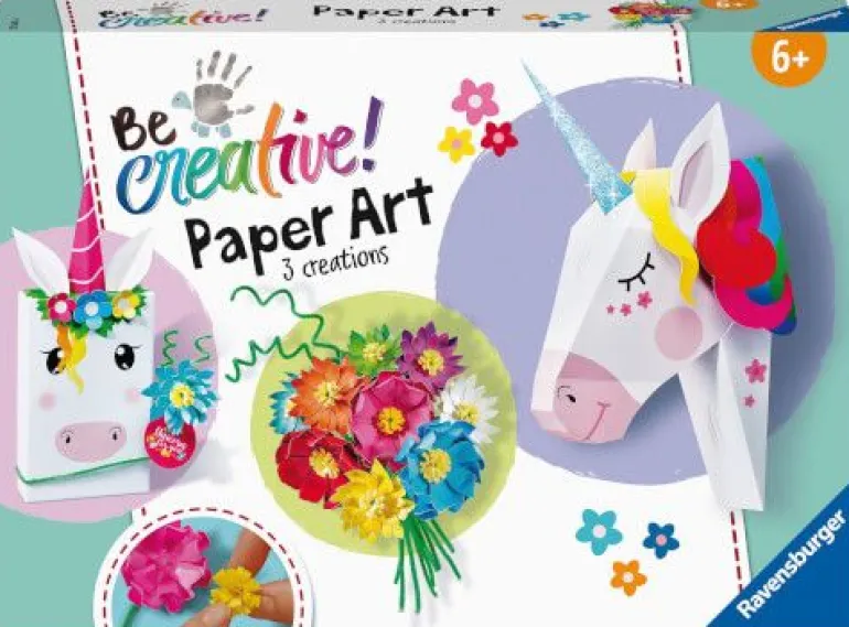 Mit dem BeCreative Bastelset Paper Art von Ravensburger können tolle Papierkunstwerke gebastelt werden. Bereits Kinder ab 6 Jahren können mit der Schritt für Schritt-Anleitung kreativ werden und aus vorgestanztem Papier bunte Blüten, eine Geschenkbox und ein wunderschönes Einhorn entstehen lassen. Die BeCreative-Sets von Ravensburger inspirieren Kinder zum Selbermachen!Aus den im Set enthaltenen Papieren, Pfeifenputzern, Werkzeugen und Klebstoff können Kinder ab 6 Jahren entdecken was mit Paper Art alles möglich ist. Mit den vielfältigen Inhalten können einzigartige Deko-Objekte gebastelt werden. Techniken wie Quilling, Falten und Kleben in verschiedenen Schwierigkeitsstufen werden in der ausführlichen Anleitung genau beschrieben und schenken viel Spaß beim Basteln und Dekorieren.