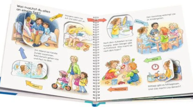 Gestern, morgen, in einer Stunde, nächste Woche – unsere Zeiteinteilung ist für kleine Kinder nur schwer zu begreifen. Wann ist #gleich? Was geht schnell und was dauert lange? Welche Wochentage und Monate gibt es? Was ist morgens, mittags, abends? Mithilfe von anschaulichen Alltagssituationen macht dieses Buch auch abstrakte Zeitbegriffe schon für Kinder ab 2 Jahren fassbar und hilft ihnen, Zeitpunkte und -räume besser einzuschätzen. Wie lange noch? Können wir #gestern in den Wald gehen? Wann habe ich wieder Geburtstag? Für uns Erwachsene sind zeitliche Einteilungen ganz selbstverständlich – für kleine Kinder sind sie dagegen nur schwer nachvollziehbar. Im Alltag führt das oftmals zu Missverständnissen. Dieses Buch schafft Abhilfe. Das Thema Zeit wird hier bereits für Kinder von 2-4 Jahren fassbarer gemacht: Warum haben wir manchmal keine Zeit? Wann müssen wir uns beeilen? Wie heißen die Wochentage? Was verändert sich in einem Jahr? So werden die Kinder dabei unterstützt, Zeiträume und Zeitpunkte besser einzuschätzen und richtig zu versprachlichen. Anhand von anschaulichen Alltagsszenen nimmt das Buch der Zeit etwas von ihrer Abstraktheit. Mithilfe vieler Klappen werden zeitliche Abfolgen und #vorher-nachher-Situationen spielerisch verständlich gemacht.