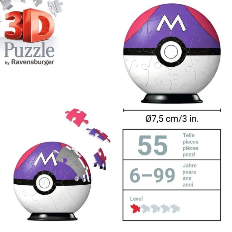 Pokémon Fans aufgepasst! Die beliebten Pokémon Pokébälle gibt es jetzt als Ravensburger 3D Puzzle-Ball! Damit kannst du dir deine Pokéballs selbst puzzeln. Schnapp sie dir alle – aktuell im Sortiment: Der klassische Pokéball, der Finsterball – [EN] Dusk Ball der Hyperball – [EN] Ultra Ball, der Superball – [EN] Great Ball, der Meisterball – [EN] Master Ball, der Flottball – [EN] Quick Ball, der Heilball – [EN] Heal Ball, der Netzball – [EN] Net Ball und der Wiederball – [EN] Repeat BallAus gewölbten Kunststoff-Puzzleteilen, die dank EasyClick Technology perfekt zusammen passen, entsteht Stück für Stück dieser stabile 3D Puzzle-Ball, ganz ohne Kleben. Die Nummerierung der Teile auf der Rückseite erleichtert das Vorsortieren und ermöglicht einfaches Puzzeln nach Zahlen.