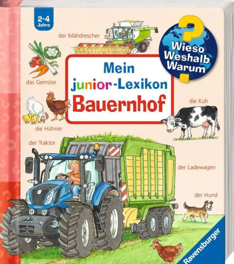 Einmal Stall- und Landluft schnuppernAuf den Traktor, fertig, losgetuckert! Auf dem Bauernhof gibt es so viel zu erleben: Der Maishäcksler fährt übers Feld, die Schafe werden geschoren und die Kühe gefüttert. Sogar Ferien kann man dort machen. Kinder erfahren im Buch, was Maschinen wie der Mistroboter und der Eierautomat können. Mit spielerischen Klappen kaufen sie im Hofladen ein und helfen bei der Ernte von Obst, Gemüse und Getreide. Und welche Werkzeuge braucht der Bauer? Das finden Kinder anhand eines Spiels heraus.Wieso? Weshalb? Warum? juniorDie Sachbuchreihe für Kinder von 2-4 JahrenJeden Tag entdecken Kinder etwas Neues – und haben viele Fragen. Wann kommt die Feuerwehr? Was machen die Tiere im Winter? Warum muss ich Zähne putzen?