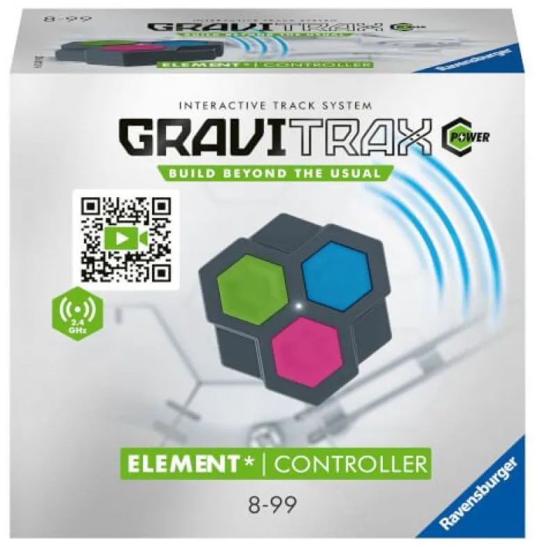 Eins werden mit dem Track!Mit dem elektronischen GraviTrax POWER Element Controller kann der Lauf der Kugel in der Bahn aktiv beeinflussen werden.Ein Track, unzählige Möglichkeiten! Mit den elektronischen GraviTrax POWER Elementen kontrolliert der Spieler den Lauf der Kugeln. Über den Controller können per Knopfdruck die POWER Elemente Weiche, Starter oder Lever aktiviert werden. (Nicht im Produkt enthalten.) Drei Farbkanäle werden beim Bauen der Kugelbahn aktiviert Rot, Grün oder Blau.