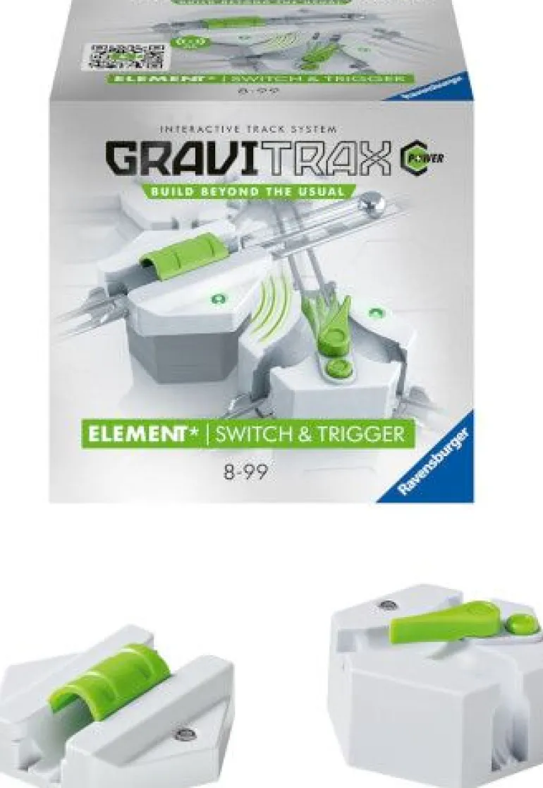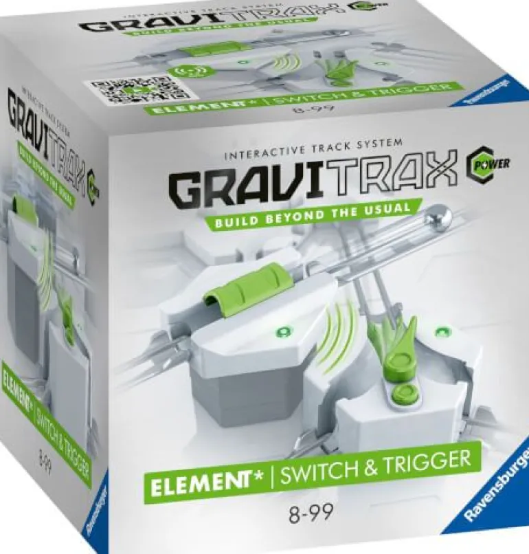 Die GraviTrax POWER Elemente Switch & Trigger umfassen mit beiden elektronischen Komponenten einen Bestandteil für das Ravensburger Kugelbahnsystem.Mit den neuen GraviTrax POWER Elementen Switch & Trigger können neue Möglichkeiten entdeckt werden! Über Funk kommunizieren die Elemente miteinander, diese werden durch drei Farbkanäle visualisiert. Bei einem Signal vom Trigger zur Switch, stellt sich die Switch automatisch um. Der Spieler hat mehr Kontrolle über den Bahnverlauf. Er kann die Wege der Kugel durch die Bahn variieren und die Laufzeit der Bahn hierdurch deutlich verlängern. Noch mehr Action, Power und Spielspaß mit GraviTrax!GraviTrax ist ein flexibel erweiterbares, interaktives Kugelbahnsystem für Kinder ab 8 Jahren: Mit GraviTrax bauen Kinder, Jugendliche und Erwachsene nicht nur einfache Kugelbahnen.