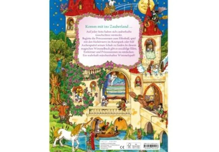 Komm mit ins Elfenland! In den wunderbaren Szenen aus der Welt der Einhörner, Prinzessinnen und Zauberwaldwesen gibt es jede Menge zu entdecken. Ein echter Mädchentraum im magischen Wimmelbuch! Absolutes Mädchenthema in einem zauberhaften Wimmelband. Suchen, Entdecken Lachen und Erzählen: Stundenlange Unterhaltung garantiert. Feen, Prinzessinnen und Einhörner liebevoll illustriert.