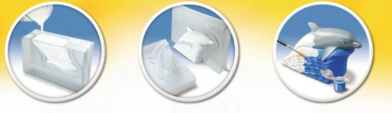 · Enthält 2 Gießformen, 2 Gipsbeutel (200 g), Pinsel, Feile, Anleitung