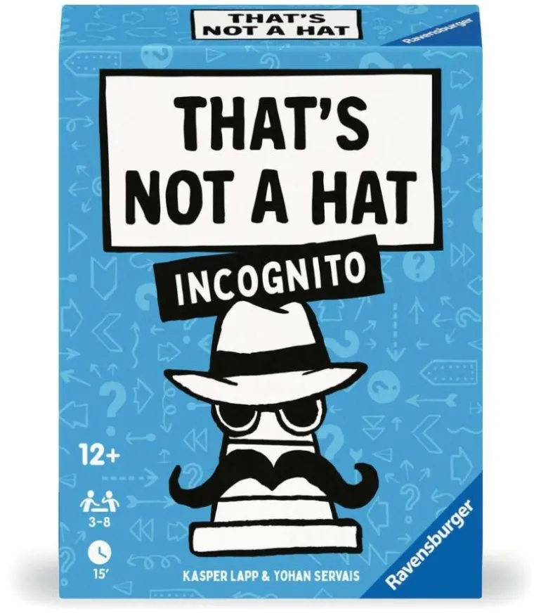 Schnell, einfach und einfach unvergesslich! That’s not a hat! Jetzt mit „Incognito-Twist“!Ein paar Karten merken? Klingt einfach? Nicht bei „That’s not a hat – Incognito“! Hier bestimmt ihr, welche Personen als verdeckte Karten unter den Mitspielenden hin und her wandern und „incognito“ gehörig Verwirrung stiften. Deine Karte zeigt eine Person mit Bart? Du entscheidest, ob es Freddie Mercury, Salvador Dali oder der Weihnachtsmann sein soll. Spaß ist garantiert bei diesem einfach „unvergesslichen“ Partyspiel!Ein paar Karten merken? Klingt einfach? Nicht bei „That’s not a hat – Incognito“! Hier bestimmt ihr, welche Personen als verdeckte Karten unter den Mitspielenden hin und her wandern und „incognito“ gehörig Verwirrung stiften. Deine Karte zeigt eine Person mit Bart? Du entscheidest, ob es Freddie Mercury, Salvador Dali oder der Weihnachtsmann sein soll. Spaß ist garantiert bei diesem einfach „unvergesslichen“ Partyspiel!Inklusive „Extreme“-Version mit wechselnden Personen