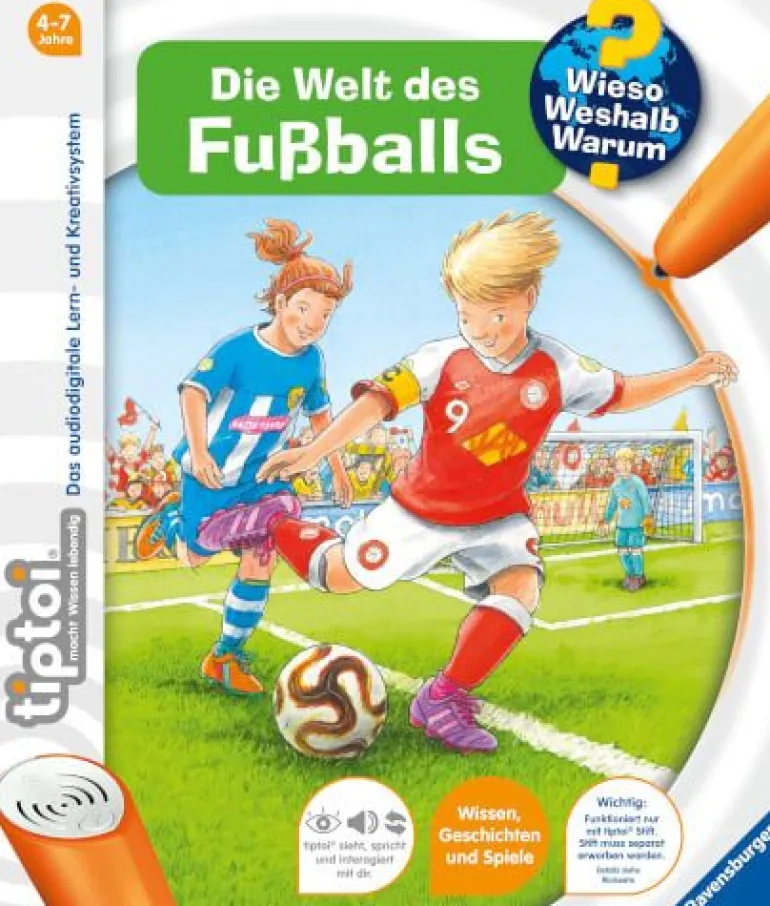Wie trainiert ein Profifußballer? Was passiert vor, während und nach dem Spiel? Welche Meisterschaften gibt es? Mit über 1000 Geräuschen und Texten, vielen Spielen, einem Lied und 11 Ausschnitten aus Nationalhymnen. Funktioniert nur mit tiptoi® Stift. Hohe Aufmerksamkeit durch die Fußball-Weltmeisterschaft 2018. Topthema, wenn es um Sport und Spiel geht. Mit über 1.000 Sach- und Erzähltexten, Geräuschen, einem Lied und 11 Ausschnitten aus Nationalhymnen.